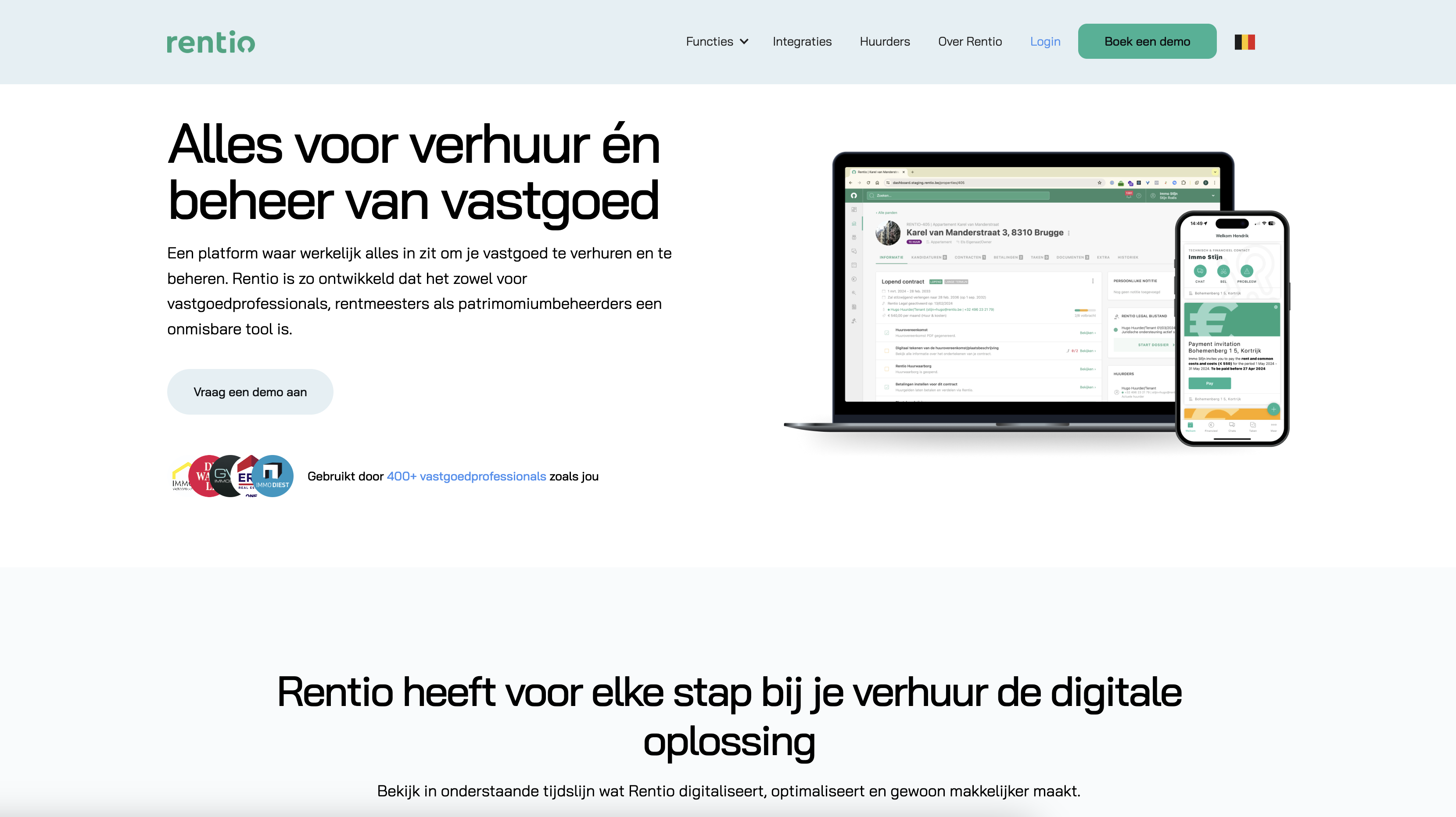 Rentio is een Belgische cloudoplossing die het volledige verhuur- en beheerproces digitaliseert. De tool is ontworpen voor zowel vastgoedbeheerders als eigenaars en centraliseert alles van kandidaatselectie tot boekhouding in één overzichtelijk platform.